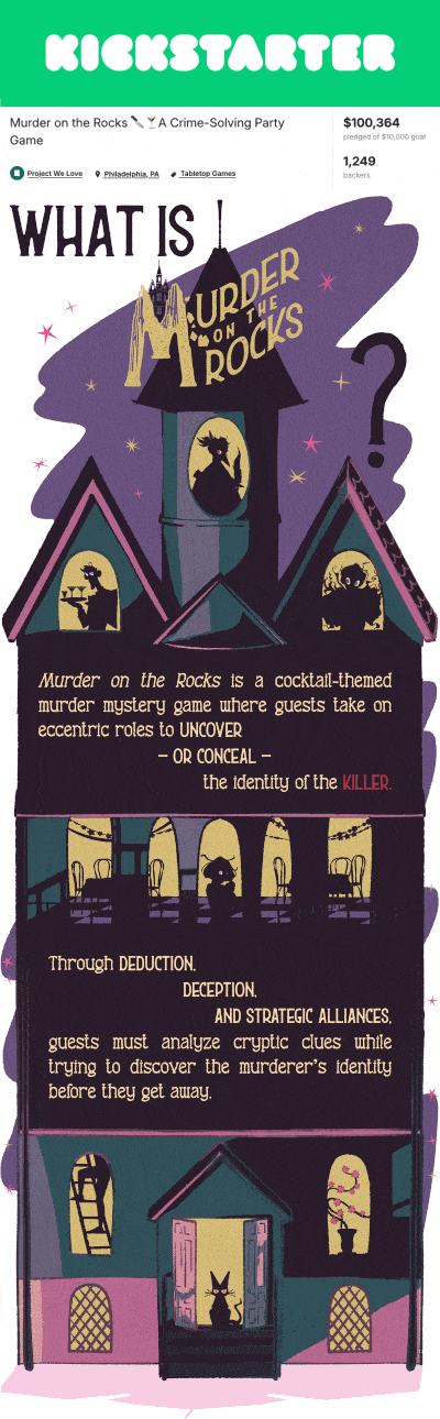 Un jeu de société conçu et produit par Misfit Mixers. J’ai illustré 100 cartes réparties entre le jeu de base et deux extensions, et pris en charge le packaging, les éléments graphiques annexes, ainsi que l’ensemble de la page Kickstarter.